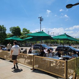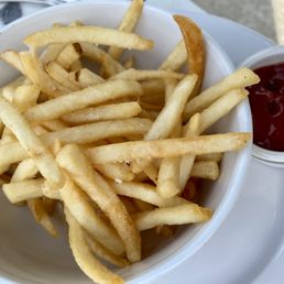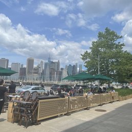 Iris Cafe is perfect to stop and have a meal before or after visiting the south side of Brooklyn Bridge Park or stock up on items at the market for a picnic on Governor's Island. Showed up at 10 am on a Wednesday, and it was super quiet. Ordered a hot chocolate, a latte, the kids menu pancakes, and a BLT on a baguette with fries. I also asked if everything would come quickly so we could make the ferry in 50 minutes. The place was pretty quiet and we had drinks in 5 and food in about 10 minutes, with a smile and excellent communication. Service was super great and I forget our staffer's name, but she was a delight. Food was excellent. The pancakes were adorable and picture perfect with tiny berries. The small one inhaled them quickly. The BLT was perfect, with excellent bread and perfectly crisp bacon and ripe tomato. Fries were thin and delish. Latte was also a win. Ambiance is okay, there are big windows that look like they open up in warm weather. Definitely is more of a bar in the evening. Couple of large screens for games.